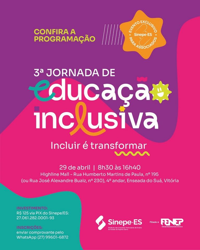 Garanta sua inscrição pelo WhatsApp do Sinepe/ES: (27) 99601-6872.