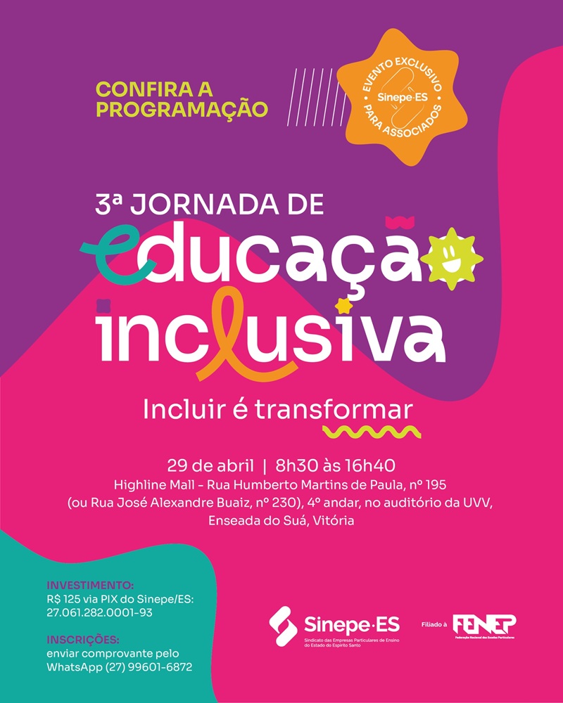 As vagas são limitadas! Garanta sua inscrição pelo WhatsApp do Sinepe/ES: (27) 99601-6872.
